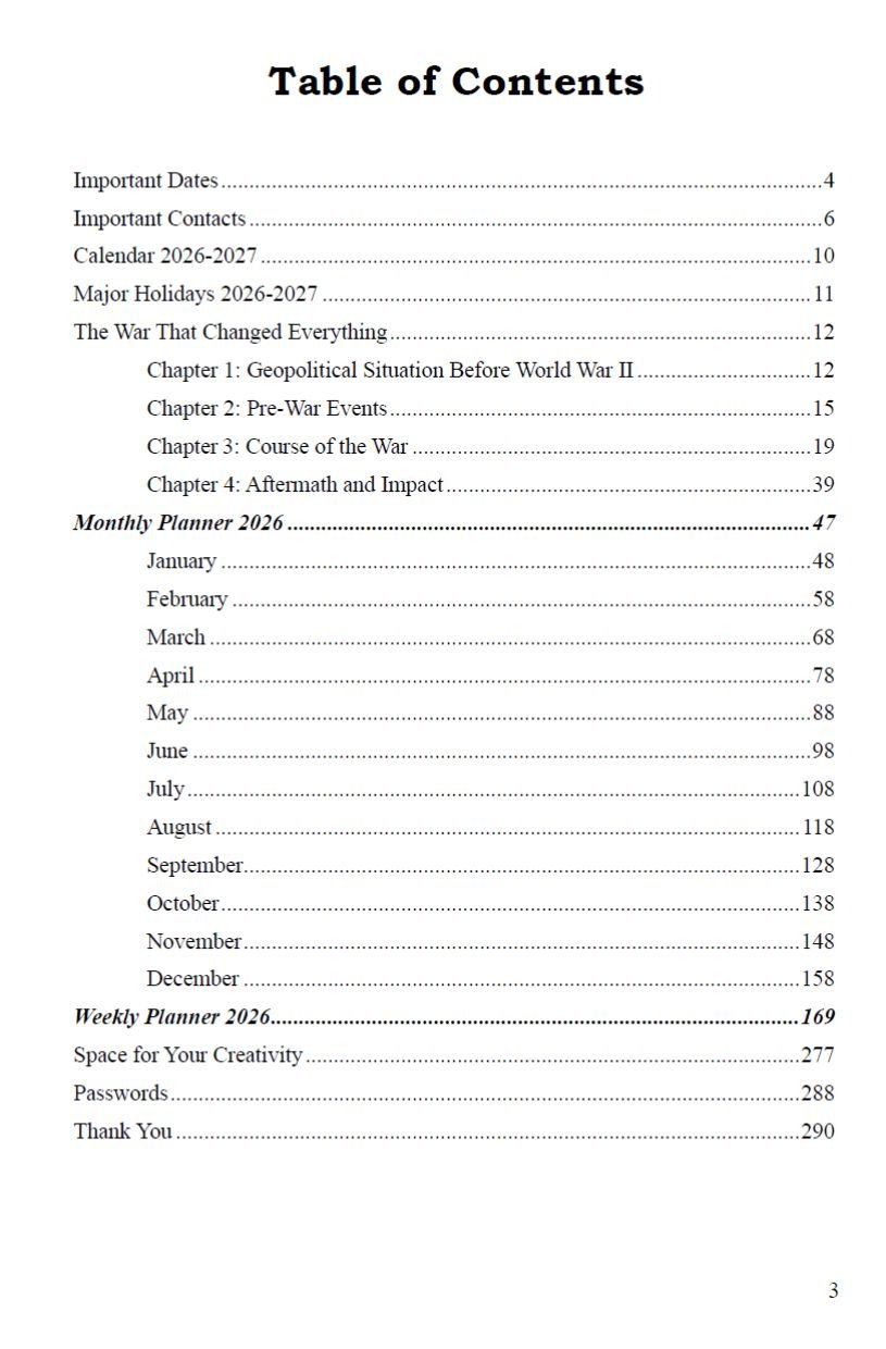 Stay organized and inspired throughout 2026 with this unique planner that combines practical scheduling tools with the compelling history of America’s role in World War II. Perfect for students, professionals, history enthusiasts, and gift-givers alike!