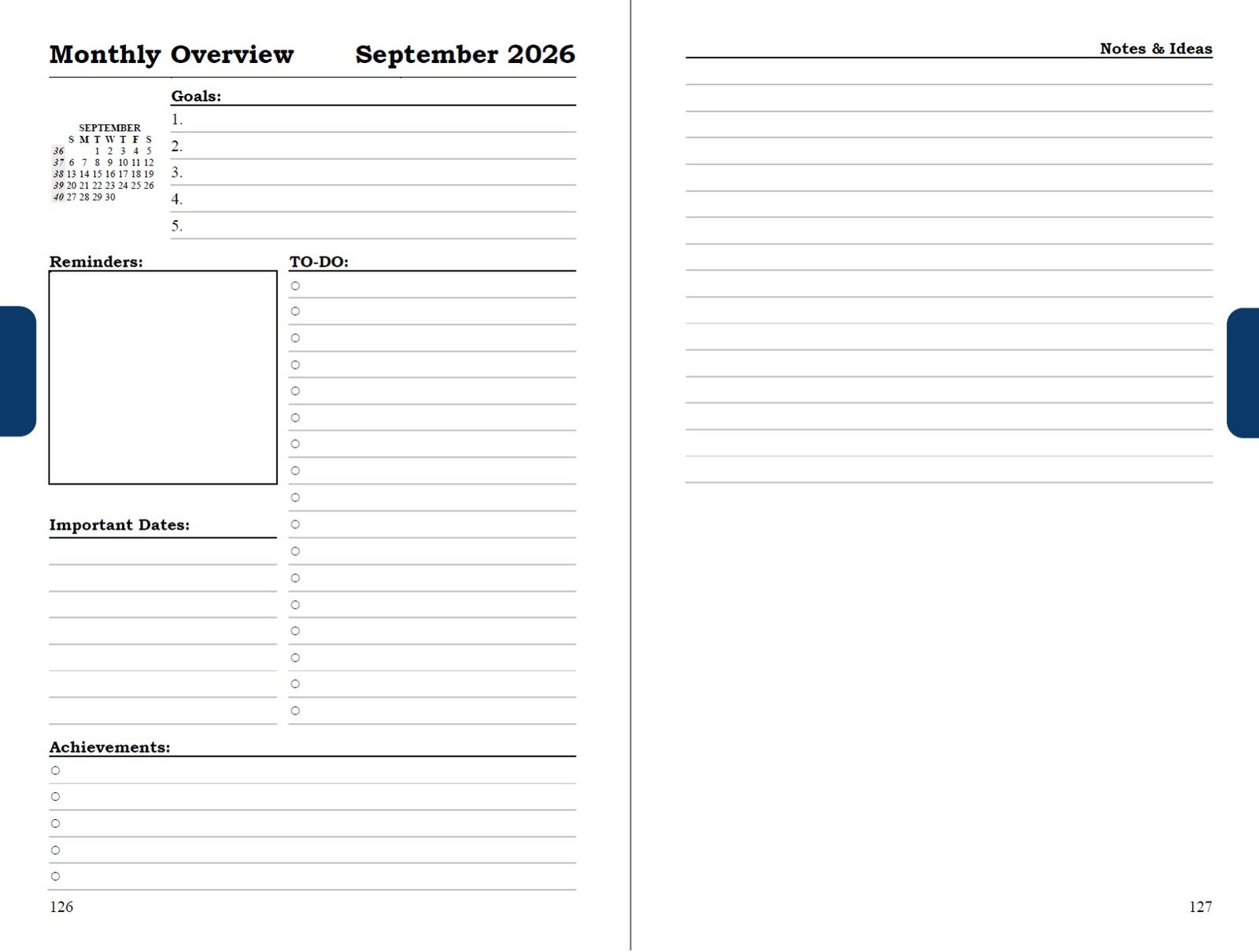 - Two-page weekly spreads