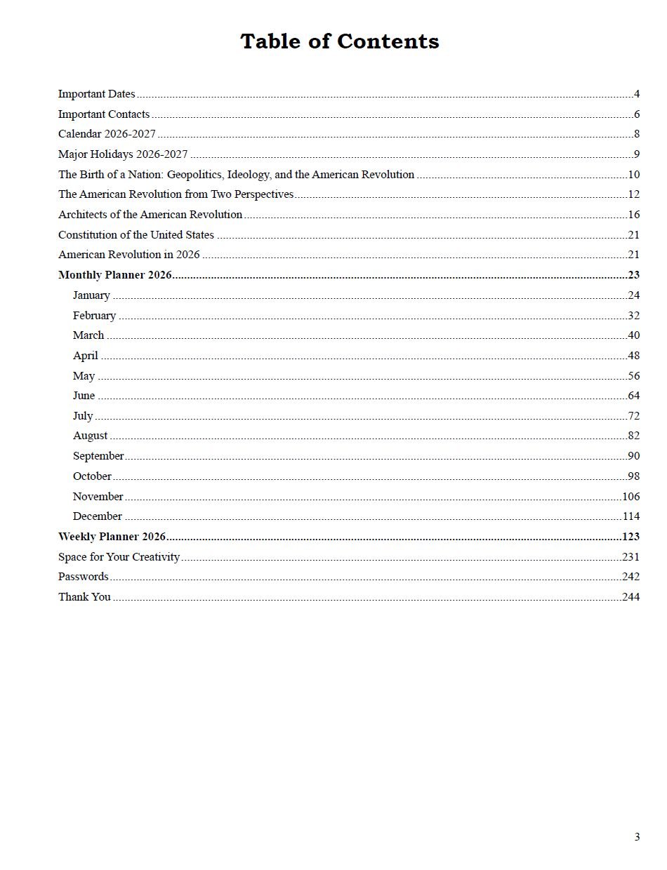 Stay organized and inspired throughout 2026 with this unique planner that blends practical scheduling tools with the captivating history of the American Revolution. Perfect for students, professionals, history enthusiasts, and gift-givers alike!