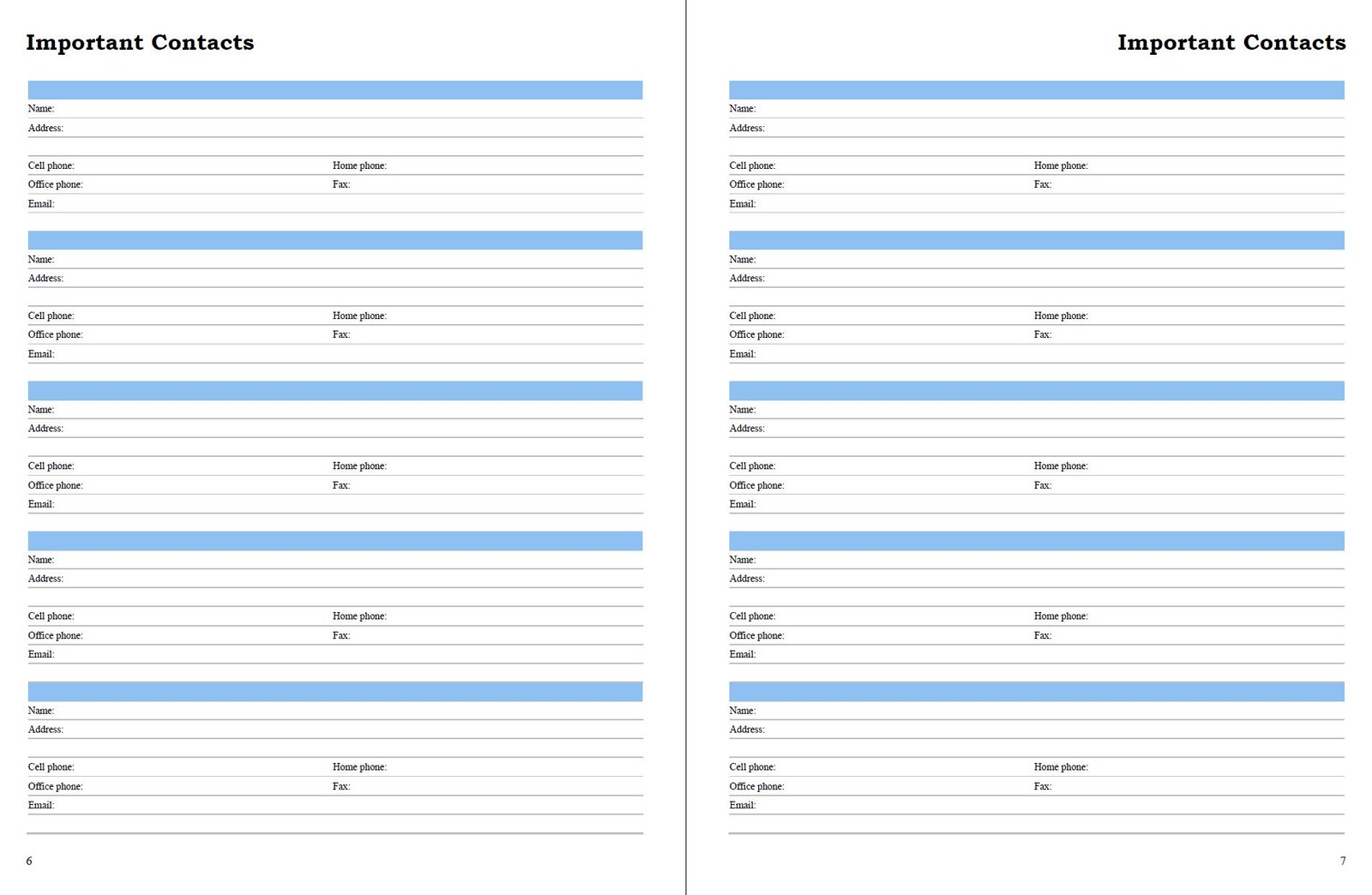 - Includes: Important Dates, Contacts, Calendar 2026–2027, and Major Holidays 2026–2027